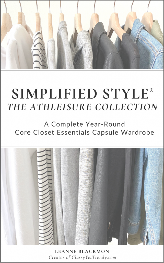 ATHLEISURE: This capsule wardrobe is perfect for the active woman, with Athletic-Inspired Casual outfits in both neutral and accent colors.